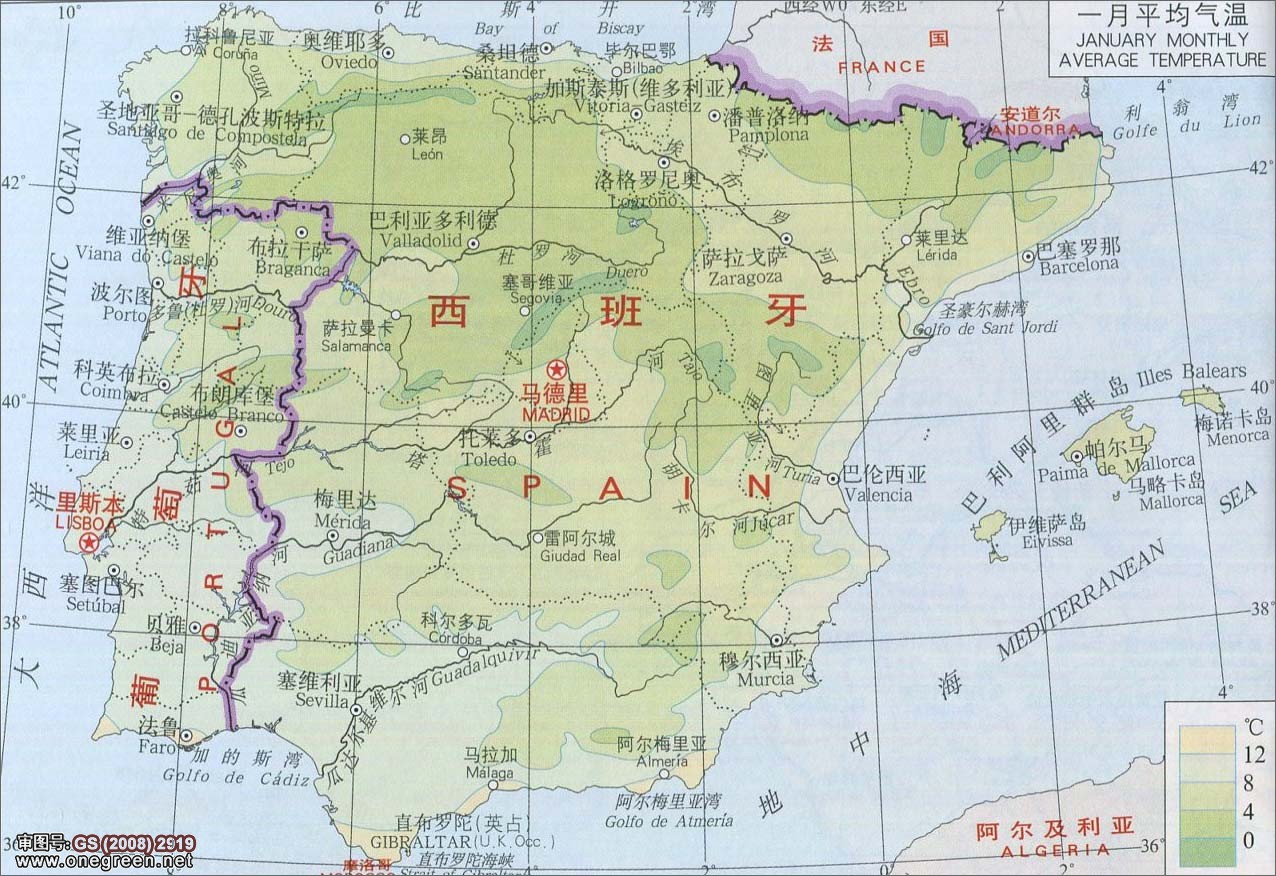 | 地图窝 >> 地图库 >> 世界地图 >> 欧洲 >> 西班牙 >> 一月平均气温图地图 | 分国地图 | 分省地图 | 政区地图 | 交通地图 | 旅游地图 | 历史地图 | 景点地图 | 校园地图 |