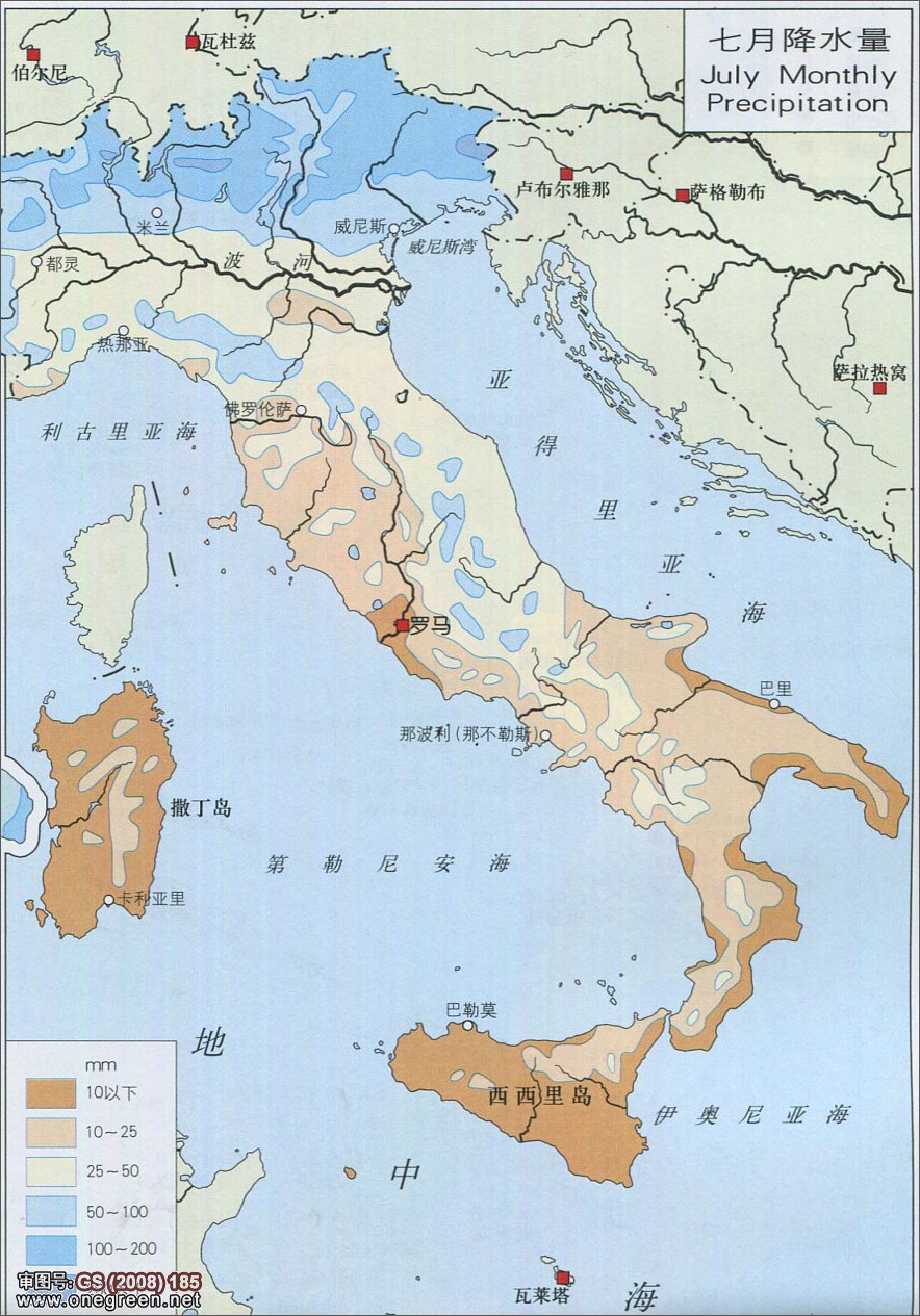 | 地图窝 >> 地图库 >> 世界地图 >> 欧洲 >> 意大利 >> 意大利七月降水量图地区图 | 分国地图 | 分省地图 | 政区地图 | 交通地图 | 旅游地图 | 历史地图 | 景点地图 | 校园地图 |