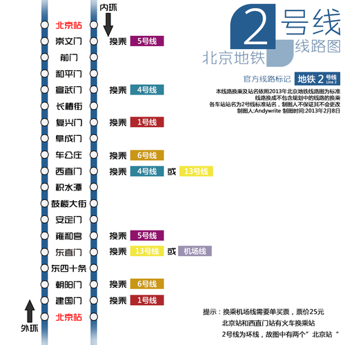 北京地铁2号线路图及换乘示意图