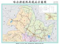 哈尔滨局铁路线站示意图-行政分色