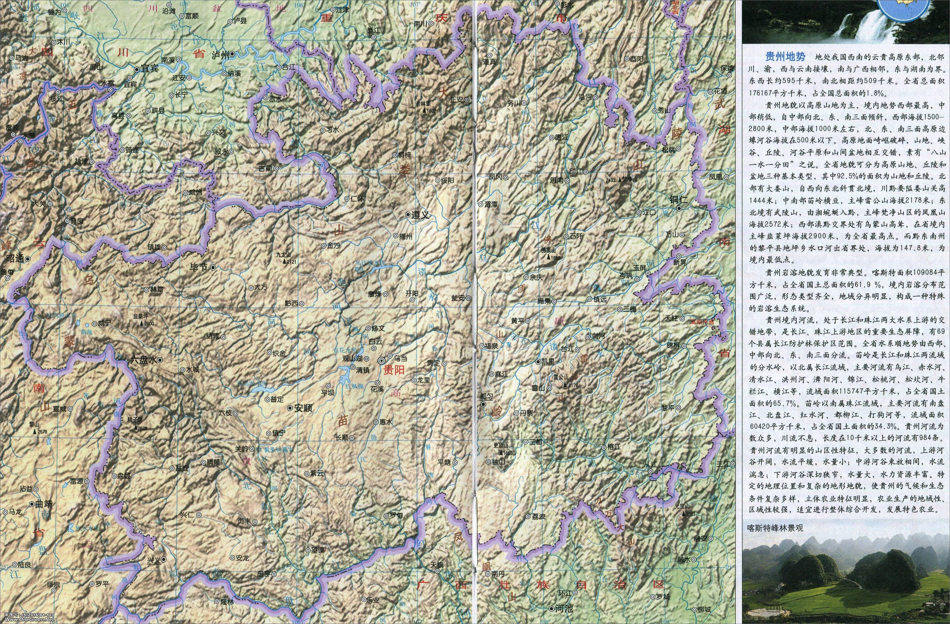 贵州地形地图、审图号:JS(2016)01-123号查看大图