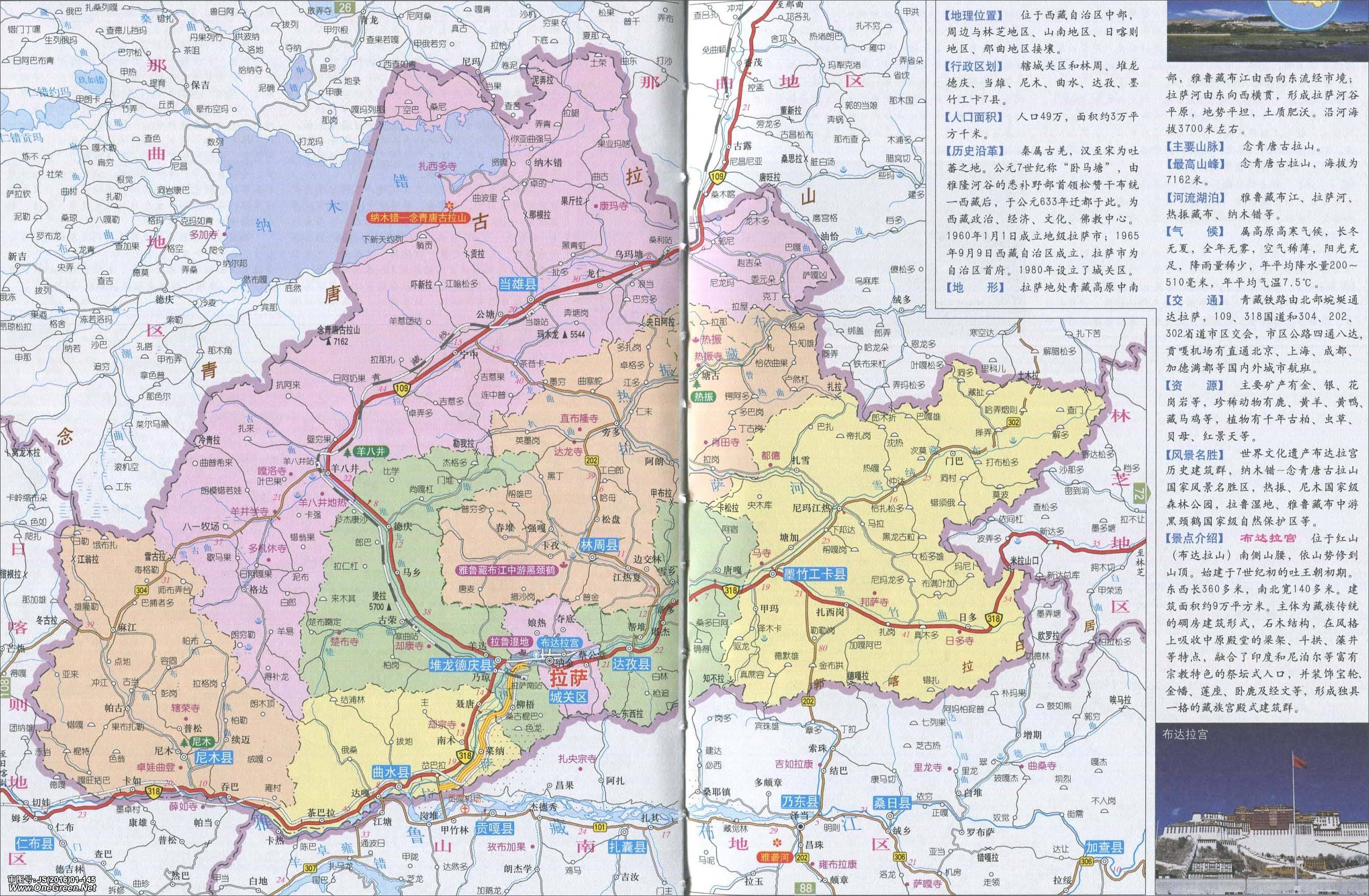 拉萨政区地图、审图号:JS(2016)01-145号查看大图
